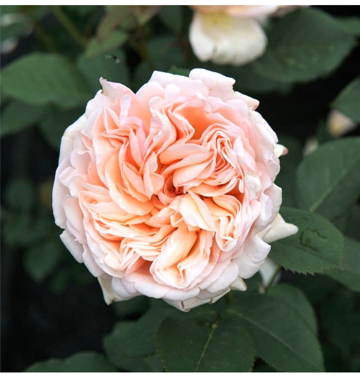 Die apricotfarbenen, schalenförmigen Blüten sind starkgefüllt und erscheinen von Juni bis Oktober. Diese werden etwa 10 - 12 cm groß und sind stark duftend.