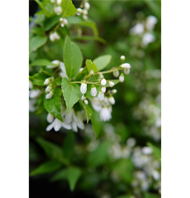Die weißen, glockenförmigen Blüten des Maiblumenstrauch erscheinen in Rispen von Mai bis Juni.