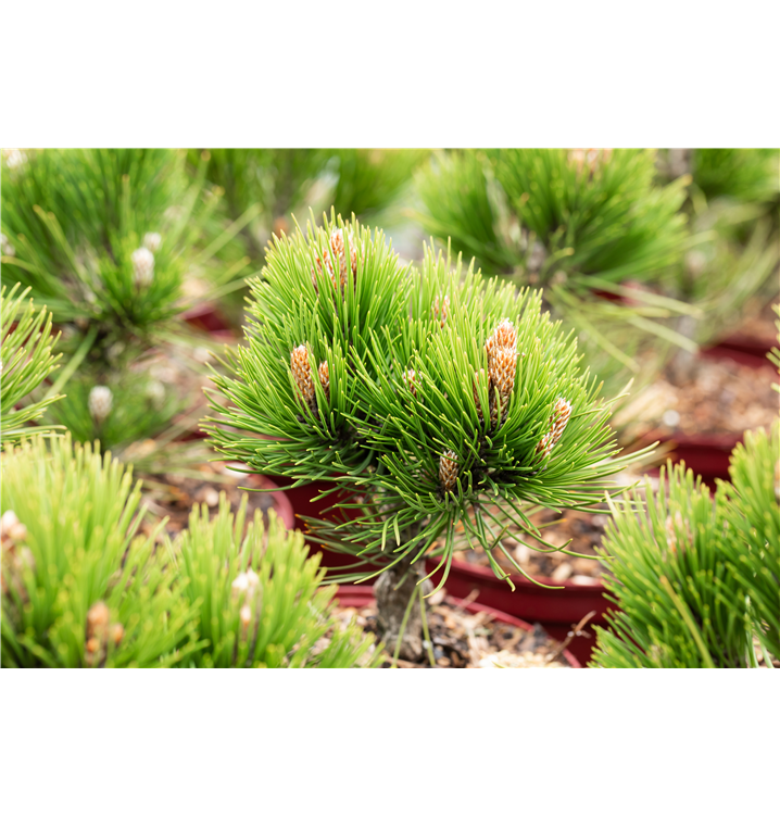 Ihre nadelförmigen Blätter haben eine dunkelgrüne Färbung. Dekorative dunkelbraune Zapfen zieren Pinus heldreichii 'Compact Gem' ab September. Dieses Gehölz ist gut frostverträglich.Sie bevorzugt durchlässigen Boden in sonniger Lage.