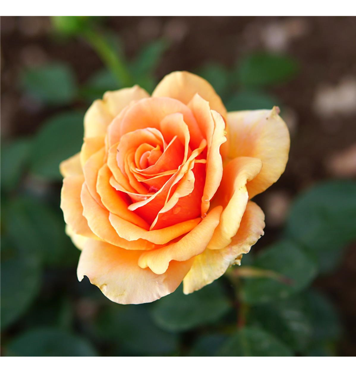 Edelrose 'Ashram'® ist ein buschig und aufrecht wachsender Kleinstrauch, der eine Höhe von 60 - 80 cm und eine Breite von 40 - 60 cm erreichen kann.