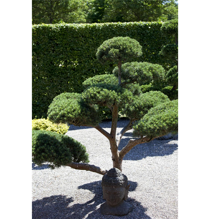 Berg-Kiefer ist ein ausladend und mehrstämmig wachsender Großstrauch mit lockerer Krone. Sie erreicht gewöhnlich eine Höhe von 4,5 - 6 m und wird ca. 4 - 5 m breit. In der Regel wächst sie 10 - 15 cm pro Jahr.
