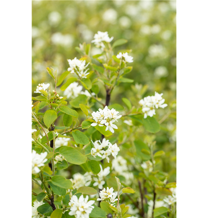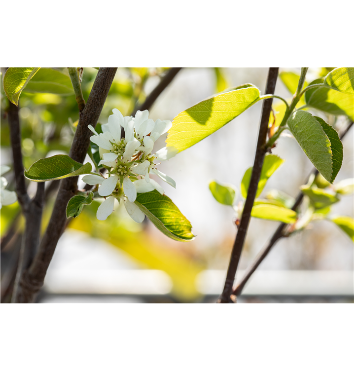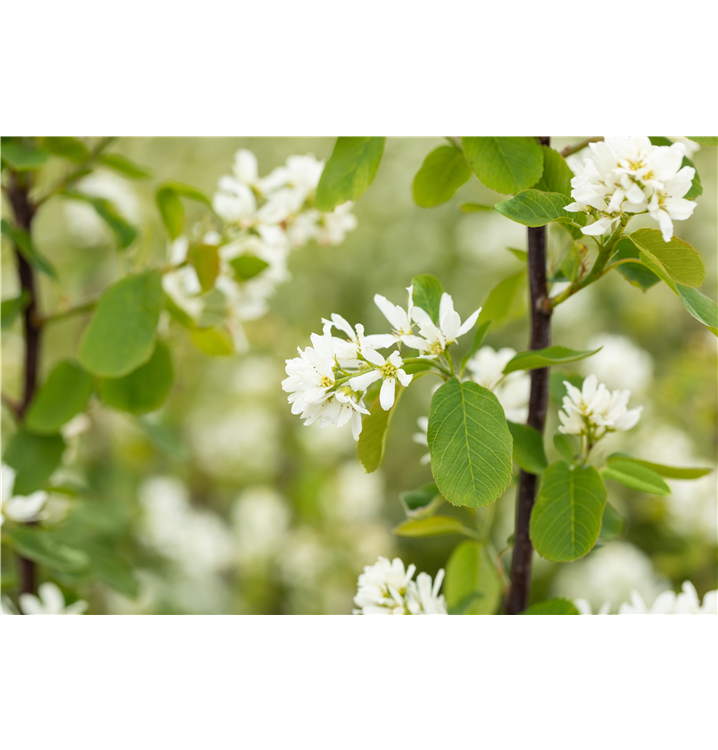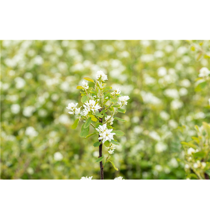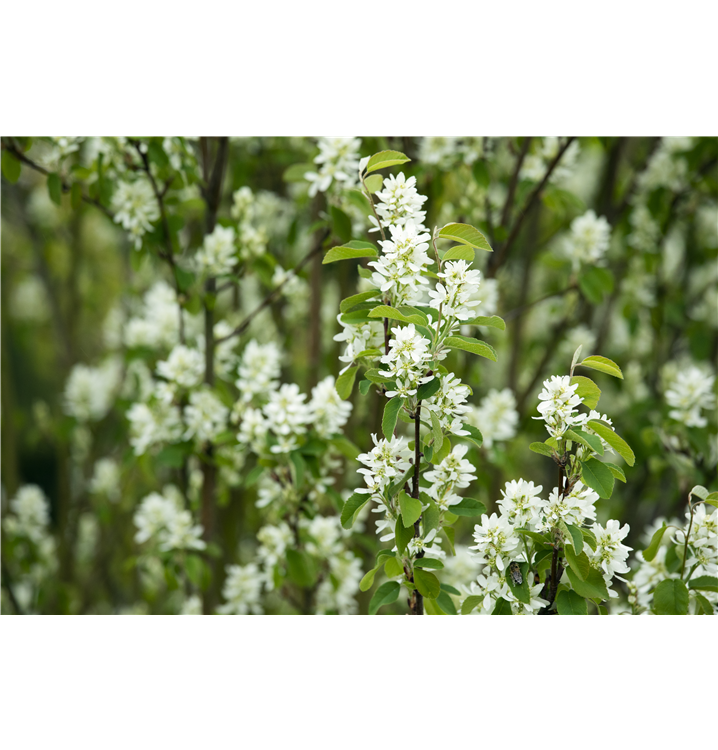 Die weißen Blüten der Felsenbirne 'Northline' erscheinen in Trauben von April bis Mai.