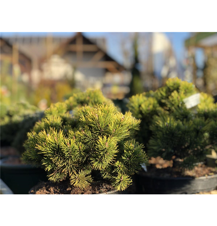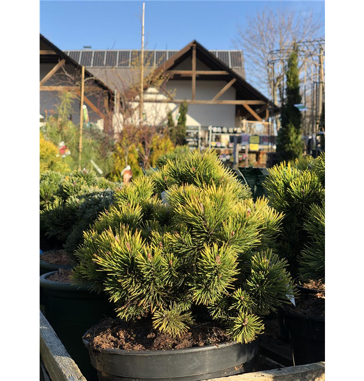 Sehr dekorativ. Die Berg-Kiefer 'Carsten's Wintergold' ist immergrün. Ihre Nadeln sind mittelgrün. Hellgelber Austrieb. Mit seinem goldgelben laub setzt sie schöne Akzente im Winter.