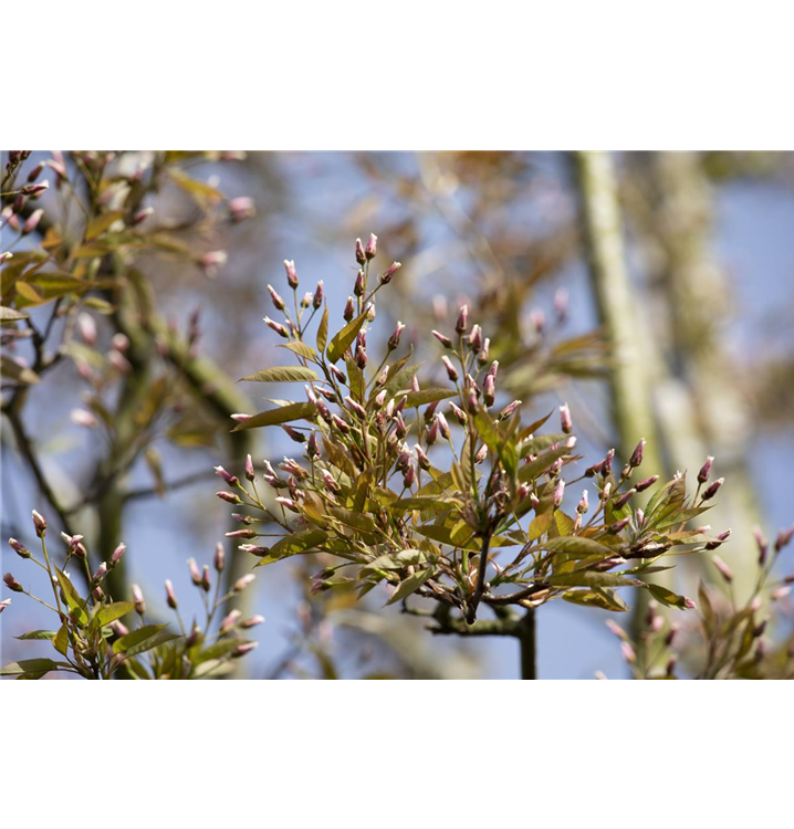 Amelanchier arborea 'Robin Hill' ist ein Flachwurzler und bildet, je nach Boden, dicht verzweigte Wurzeln.