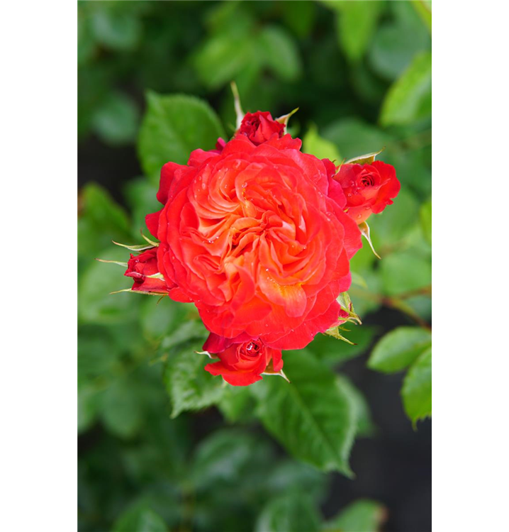Die Triebe von Rosa 'Vulcano'® sind bestachelt.