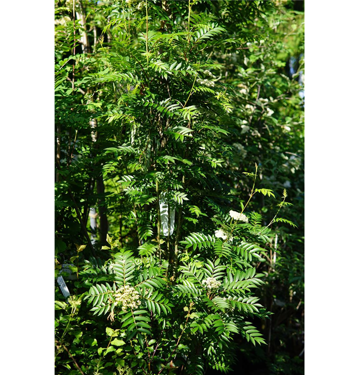 Eberesche 'Autumn Spire'® ist ein säulenförmig wachsender Großstrauch mit lockerer Krone. Sie erreicht gewöhnlich eine Höhe von 3 - 4 m und wird ca. 1 - 2 m breit. Rasch wachsend. In der Regel wächst sie 10 - 30 cm pro Jahr.