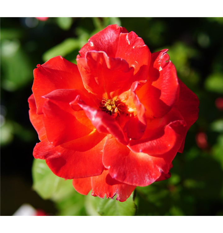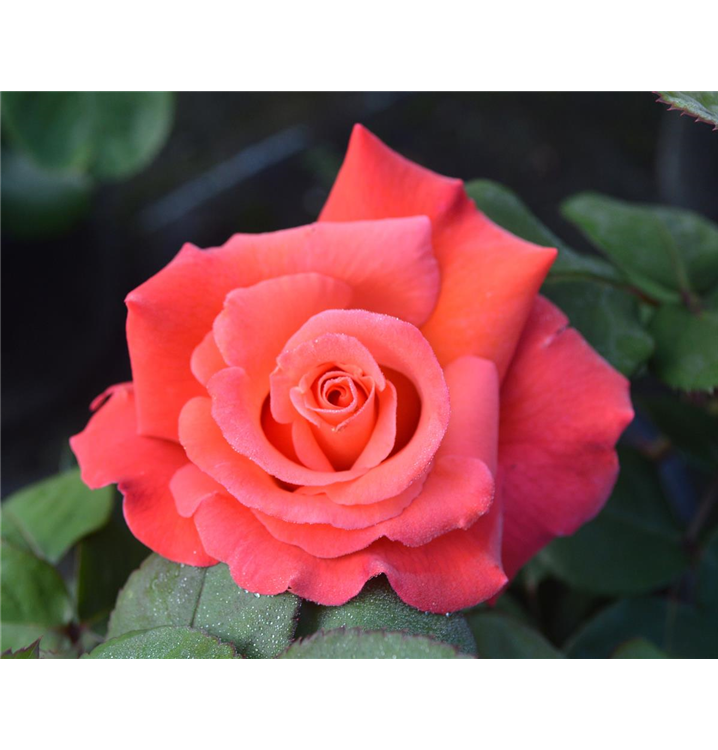 Die Edelrose 'Christoph Columbus'® (Rosa) ist eine üppig blühende Schönheit, die im Garten eine herausragende Rolle spielt. Ihre zahlreichen gefüllten Blüten in strahlendem Korallenrot erblühen von Juni bis Oktober und verleihen jedem Garten ein lebendiges Farbenspiel. Besonders an sonnigen, warmen Tagen entfaltet sich ihr betörender Duft und erfüllt die Luft mit einer unvergleichlichen Note.