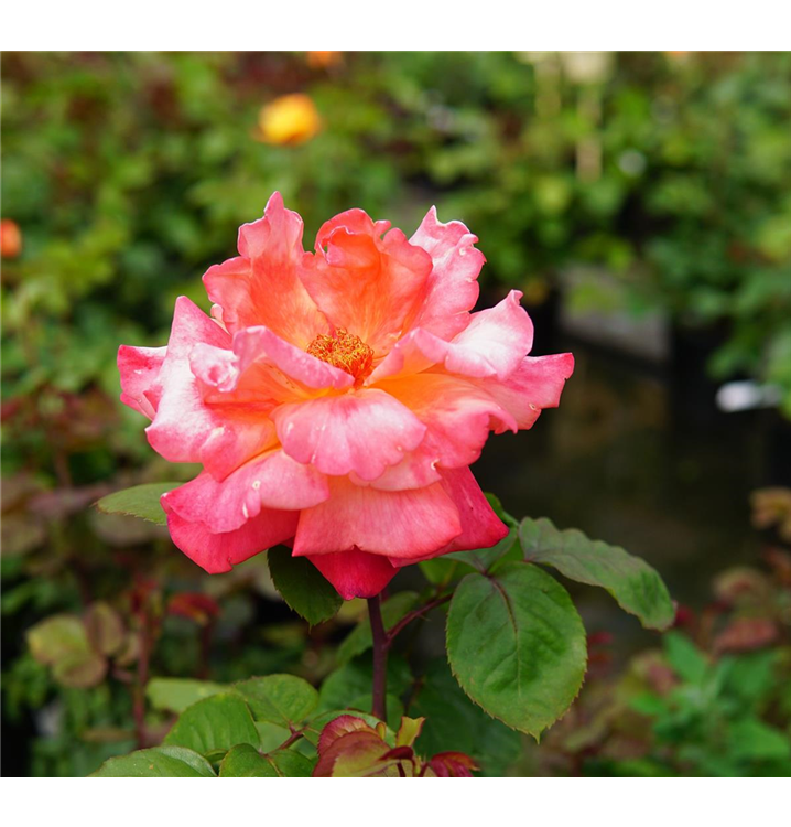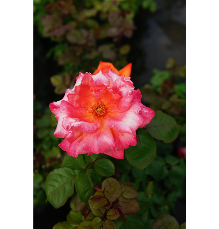 Edelrose 'Christoph Columbus'® ist ein buschig und aufrecht wachsender Kleinstrauch, der eine Höhe von 60 - 70 cm und eine Breite von 40 - 50 cm erreichen kann.