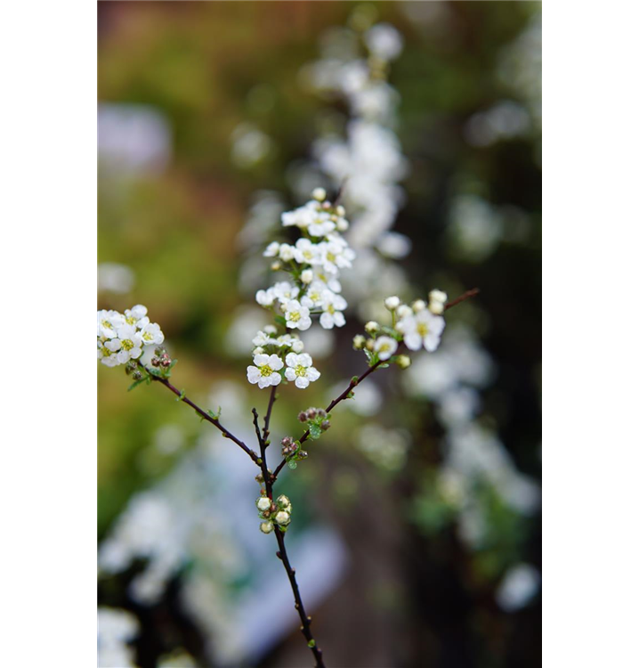 Braut-Spierstrauch ist ein locker und überhängend wachsender Strauch. Er erreicht gewöhnlich eine Höhe von 1,5 - 2 m und wird ca. 1,5 - 2 m breit. In der Regel wächst er 15 - 20 cm pro Jahr.