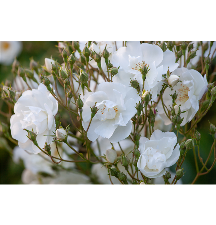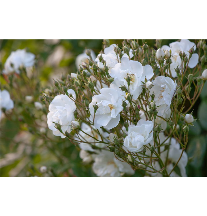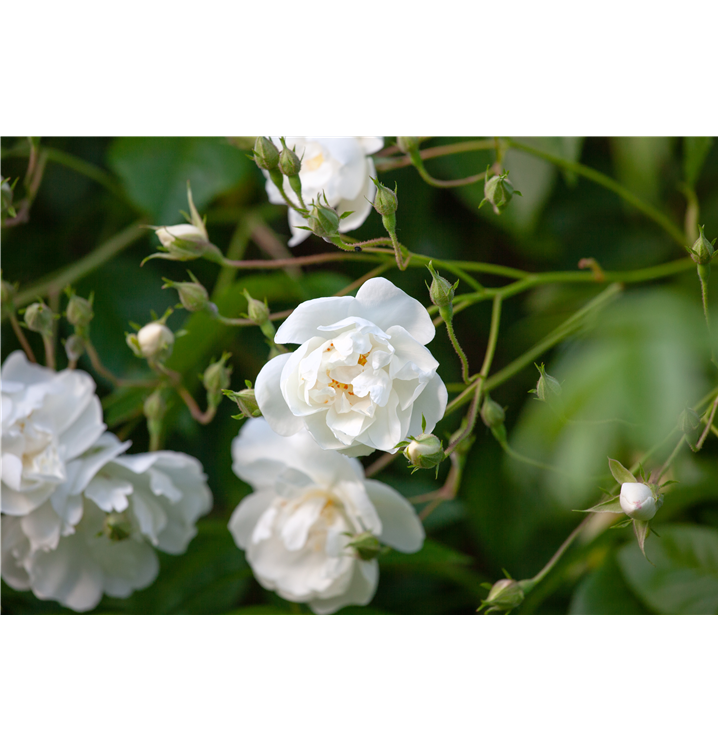 Die Triebe von Rosa 'Bobby James' sind bestachelt.