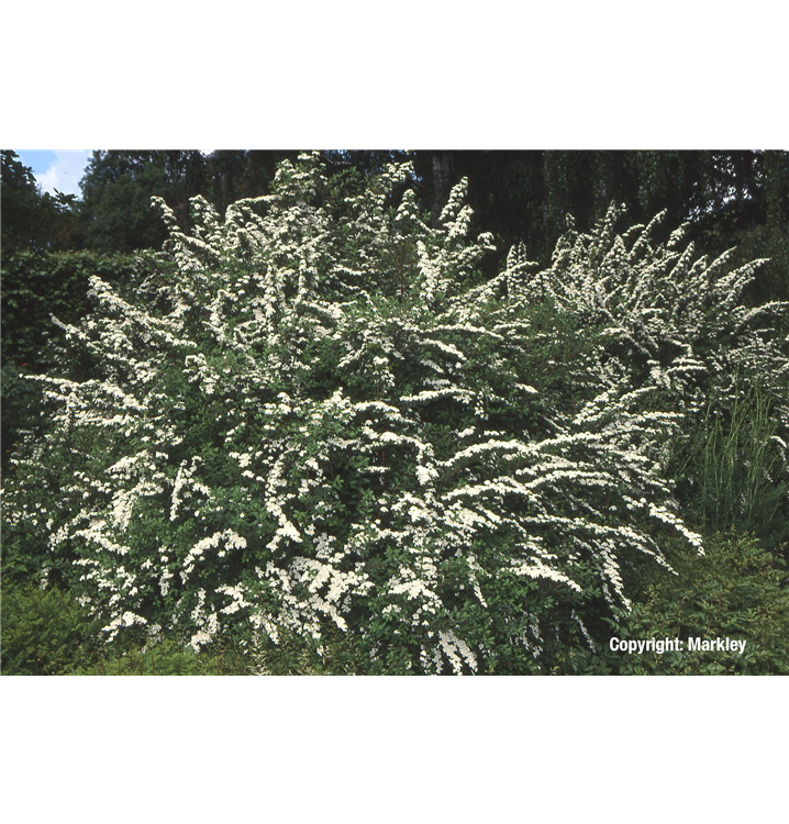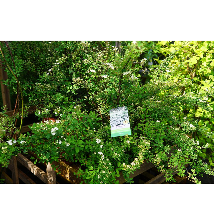 Strauchspiere 'Snowmound' ist ein buschig, aufrecht und dicht wachsender Strauch. Sie erreicht gewöhnlich eine Höhe von 1,3 - 2,2 m und wird ca. 1,5 - 3 m breit.