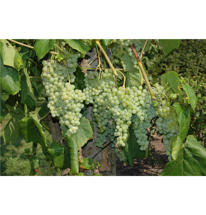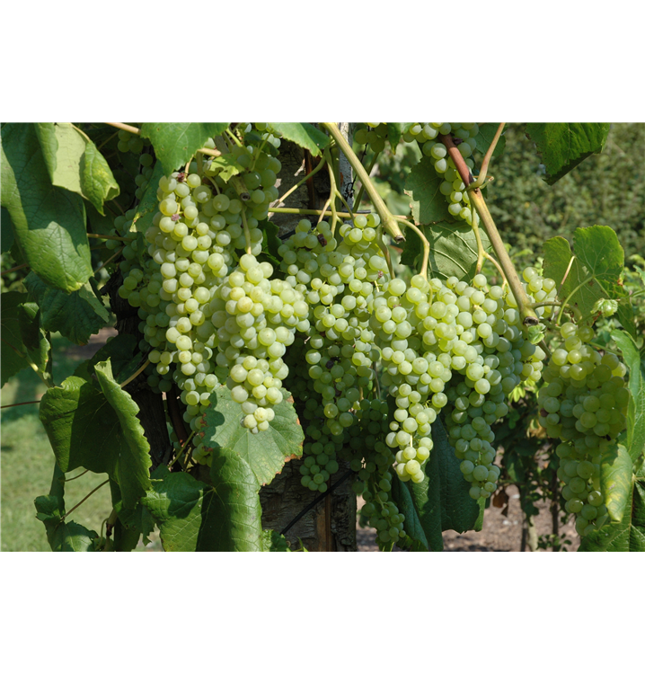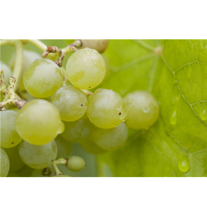 Die Tafeltraube 'Romulus' (Vitis vinifera) bildet gelbe, kernlose Früchte. Sie sind oval und haben einen süß-säuerlichen Geschmack. Für eine ertragreiche Ernte ab Mitte September schaffen durchlässiger, nährstoffreicher, sandiger Boden und ein sonniger bis halbschattiger Standort optimale Bedingungen. Auch ihre gelb-grünen, leicht duftenden Blüten sind eine schöne Erscheinung. Die Tafeltraube 'Romulus' wird mit ihrem kletternden Wuchs etwa 10 m hoch und 10 m breit.