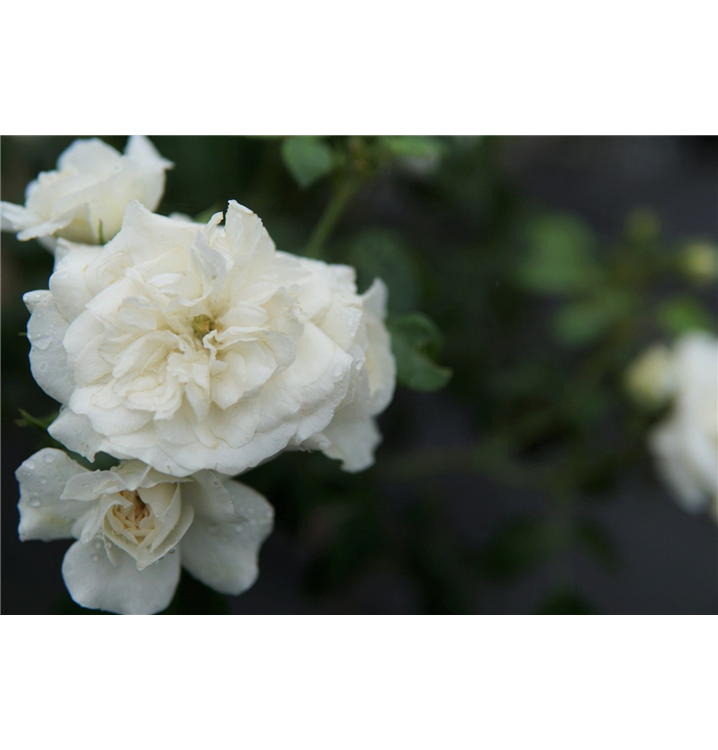 Die Beetrose 'Kastelruther Spatzen'® (Rosa) ist eine reichblühende Rose, die im Garten eine besondere Rolle spielt. Die zahlreichen Blüten sind weiß und erscheinen von Juni bis September. Ihr wunderbarer Duft entfaltet sich besonders an sonnigen, warmen Tagen. Mit dem kompakten Wuchs wird dieser Kleinstrauch bis zu 60 cm hoch und 40 cm breit.