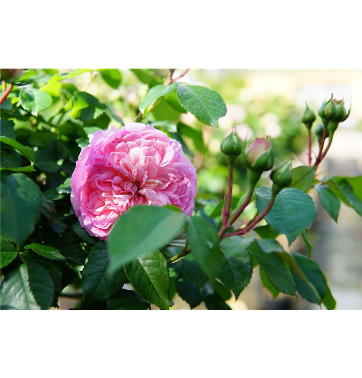 Die 'Kurfürstin Sophie'® (Rosa) ist eine königliche Erscheinung im Garten, ihre zahlreichen, gefüllten Blüten in leuchtendem Pink verzaubern von Juni bis September. Ihr betörender Duft entfaltet sich besonders an sonnigen, warmen Tagen und erfüllt den Garten mit einer unvergleichlichen Aura. Mit passenden Begleitern entfaltet die Königin der Blumen ihre volle Pracht. Niedrige Stauden, duftender Lavendel und aromatischer Salbei setzen sie perfekt in Szene und schaffen eine harmonische Umgebung, die die Schönheit dieser Rose noch mehr zur Geltung bringt.