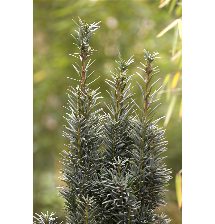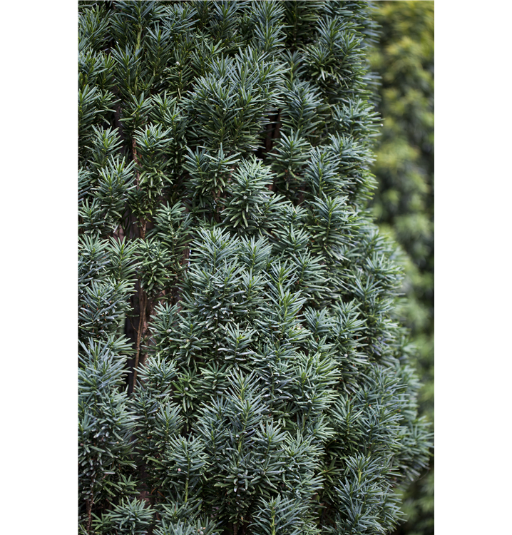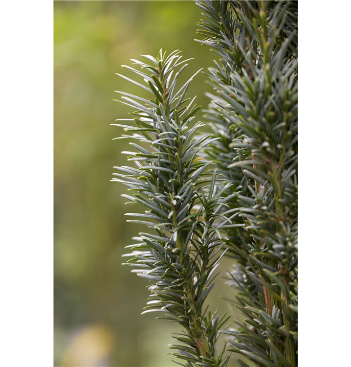 Die Schmale Säuleneibe 'Fastigiata Robusta' (Taxus baccata) ist ein Großstrauch, welcher säulenförmig, straff wächst und gewöhnlich eine Höhe von ca. 8 m und eine Breite von ca. 2,5 m erreicht. Ihre nadelförmigen Blätter haben eine mittelgrüne Färbung. Dekorative rote Zapfen zieren Taxus baccata 'Fastigiata Robusta' ab September. Dieses Gehölz ist gut frostverträglich.Sie bevorzugt durchlässigen, kalkhaltigen, nährstoffreichen Boden in sonniger bis halbschattiger Lage.