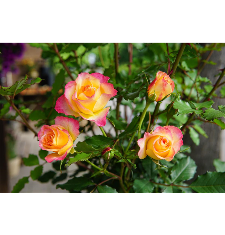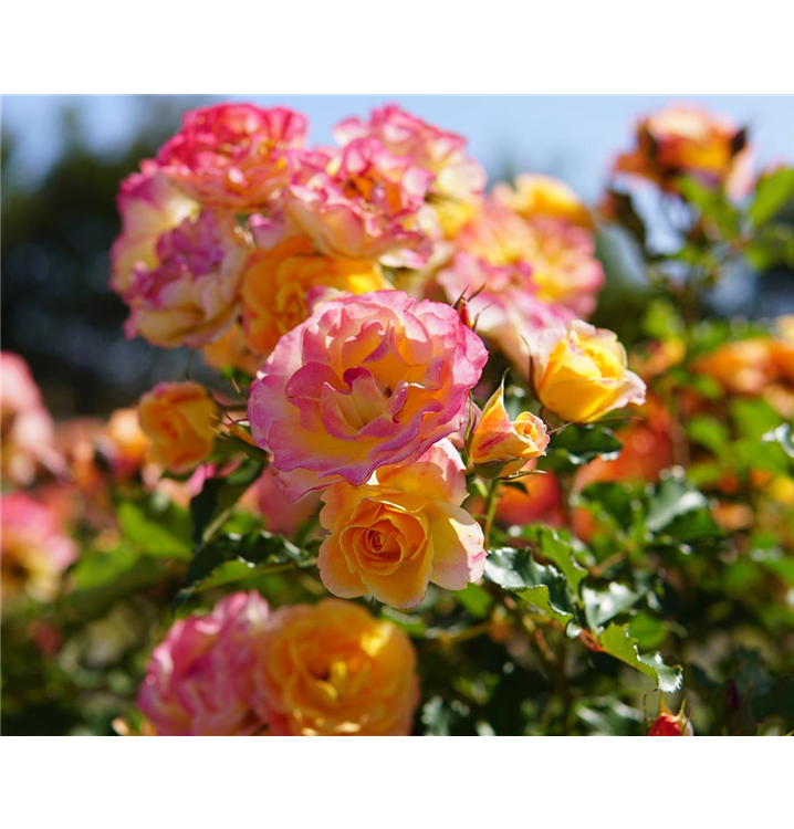 Die 'LandLust'® (Rosa) ist nicht nur eine Rose, sondern ein lebendiges Kunstwerk im Garten. Von Juni bis Oktober erfreuen ihre zahlreichen, zweifarbig gefüllten Blüten das Auge. Doch erst mit den passenden Begleitern erstrahlt die Königin der Blumen in voller Pracht. Niedrige Stauden, duftender Lavendel und aromatischer Salbei setzen sie perfekt in Szene und schaffen eine harmonische Kulisse, die die Schönheit der 'LandLust'® wahrhaft zur Geltung bringt. In dieser perfekten Symbiose entsteht ein Gartenparadies, das die Sinne belebt und jeden Betrachter in seinen Bann zieht.