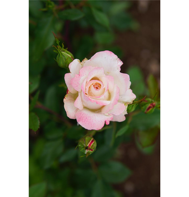 Die Triebe von Rosa 'Lyon Lumieres'® sind bestachelt.