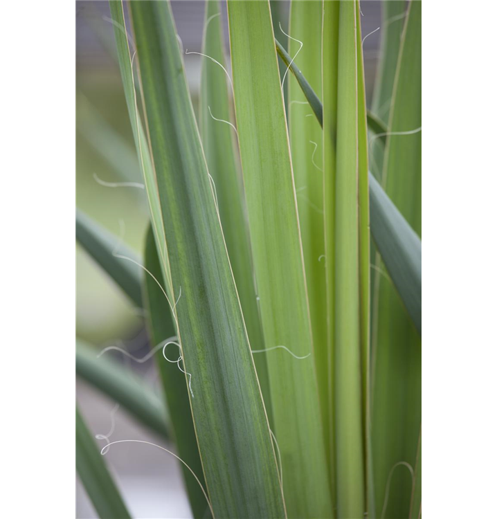 Hoher Blattschmuckwert. Die wintergrünen Blätter der Fädige Palmlilie sind grau-grün, lanzettlich.