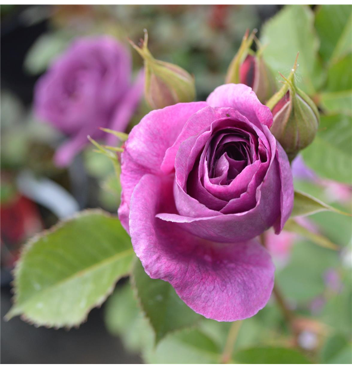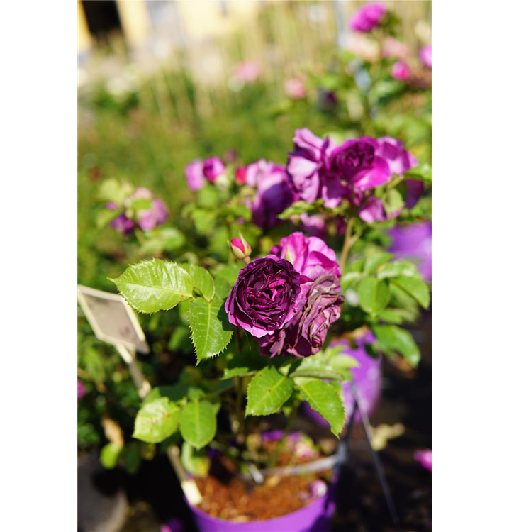 Die 'Minerva'® (Rosa) ist eine wahrhaft majestätische Erscheinung im Garten. Von Juni bis September erfreuen ihre zahlreichen, halbgefüllten Blüten in einem bezaubernden Violett das Auge und verströmen einen herrlichen Duft, der an sonnigen, warmen Tagen besonders betörend ist. Gemeinsam mit niedrigen Stauden, duftendem Lavendel und aromatischem Salbei entfaltet diese königliche Blume ihre volle Pracht und wird zum strahlenden Herzstück jeder Gartenlandschaft. Mit ihrer üppigen Blütenpracht und ihrem zauberhaften Duft verwandelt die 'Minerva'® jeden Garten in ein wahres Blumenparadies.
