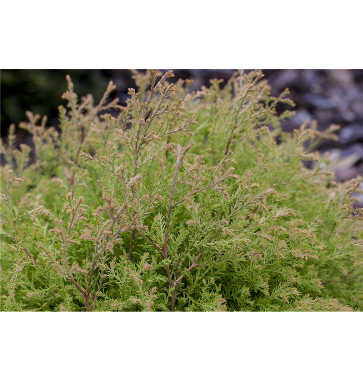 Der Lebensbaum 'Fire Chief' (Thuja occidentalis) ist ein Strauch, welcher dicht, kompakt wächst und gewöhnlich eine Höhe von ca. 3 m und eine Breite von ca. 1,5 m erreicht. Seine schuppenförmigen Blätter haben eine dunkelgrüne Färbung. Dekorative braune Zapfen zieren Thuja occidentalis 'Fire Chief' ab Oktober. Dieses Gehölz ist gut frostverträglich. Er bevorzugt kalkhaltigen, nährstoffreichen, sandigen, lehmigen Boden in sonniger bis halbschattiger Lage.