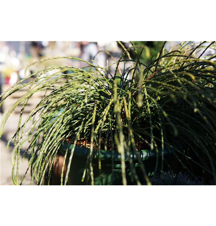 Der Zwerg-Lebensbaum 'Whipcord' (Thuja plicata) ist ein Zwergstrauch, welcher buschig, überhängend wächst und gewöhnlich eine Höhe von ca. 50 cm und eine Breite von ca. 60 cm erreicht. Seine schuppenförmigen, glänzenden Blätter haben eine dunkelgrüne Färbung. Dekorative braune Zapfen zieren Thuja plicata 'Whipcord' ab August. Dieses Gehölz ist gut frostverträglich. Er bevorzugt durchlässigen, nährstoffreichen, sauren Boden in sonniger bis halbschattiger Lage.