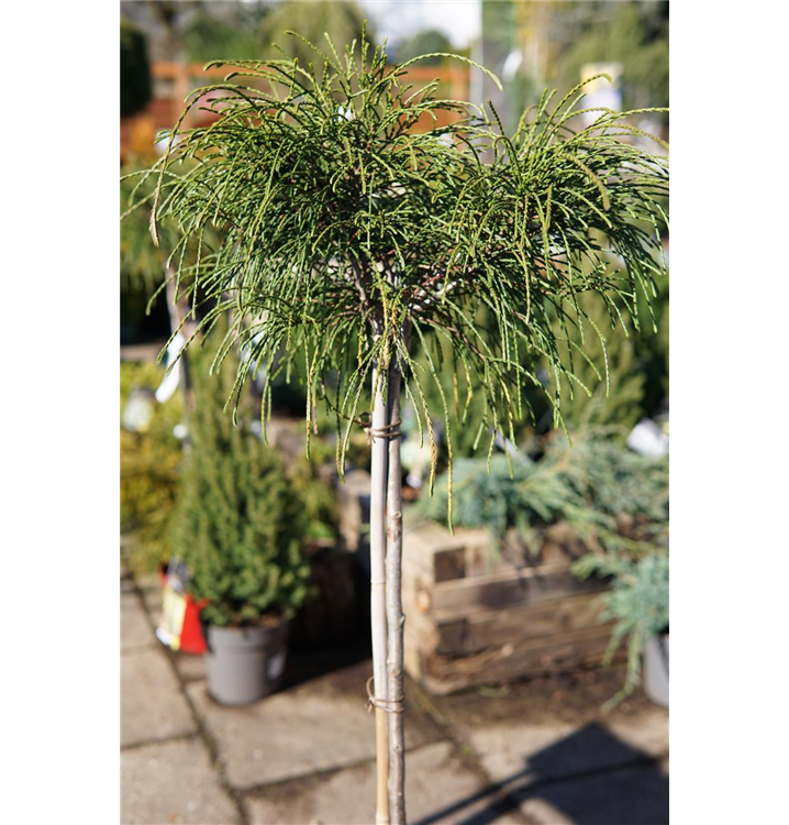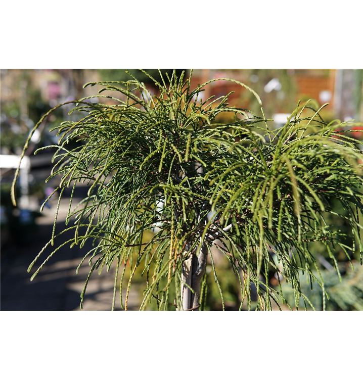 Thuja plicata 'Whipcord' ist ein Flachwurzler und bildet, je nach Boden, dicht verzweigte, fein verzweigte Wurzeln.