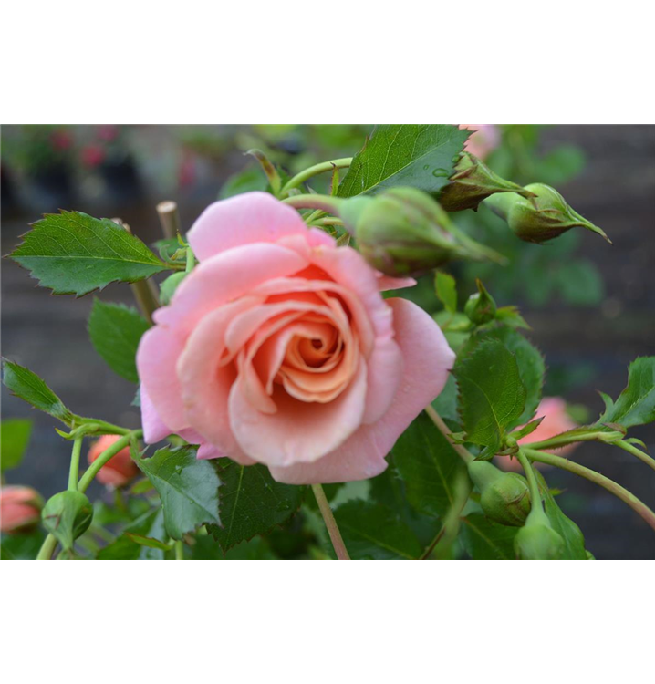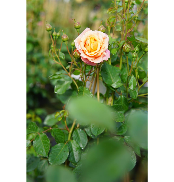Die Triebe von Rosa 'Peach Melba'®(s) sind bestachelt.