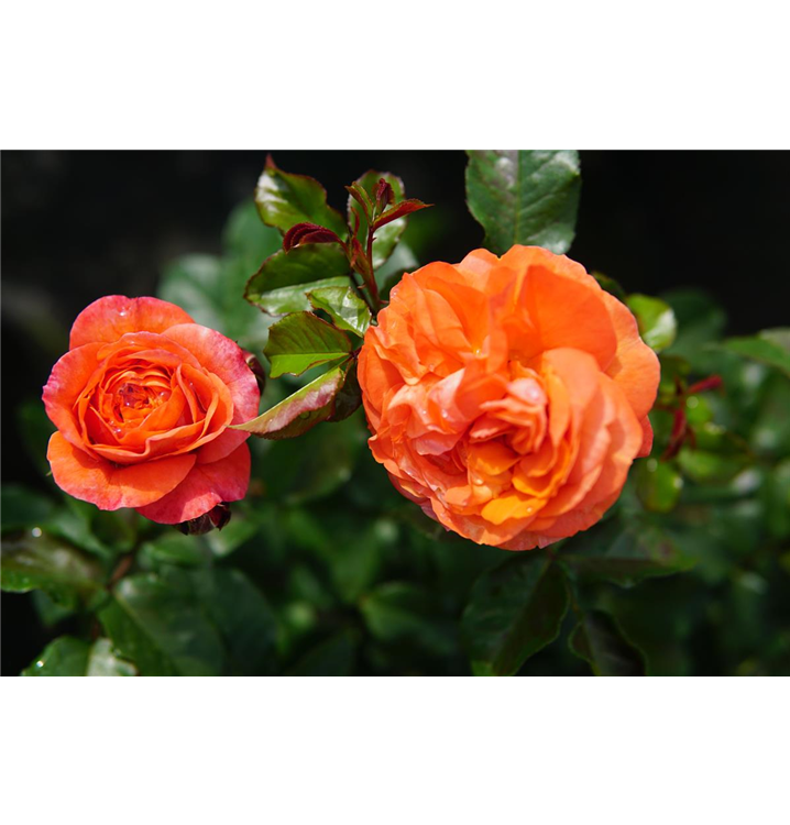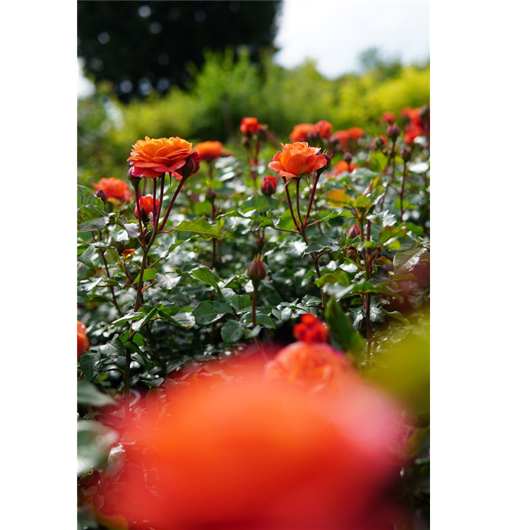 Die Strauchrose 'Phoenix' (Rosa) ist eine reichblühende Rose, die im Garten eine besondere Rolle spielt. Die gefüllten Blüten sind orange und erscheinen zahlreich von Juni bis Oktober. Mit den richtigen Begleitern an ihrer Seite, kommt die Königin der Blumen besonders gut zur Geltung. Niedrige Stauden, Lavendel und Salbei eignen sich ganz gut für diese Zwecke.