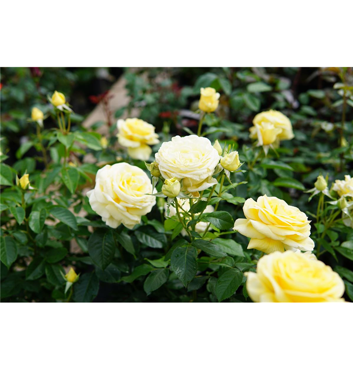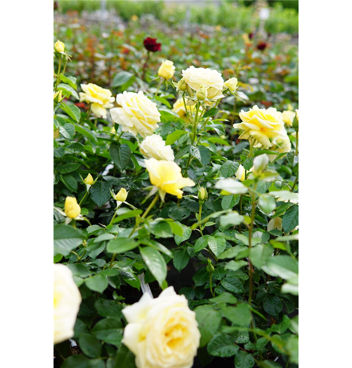 Die Edelrose 'Raffaello'® (Rosa) ist eine reichblühende Rose, die im Garten eine besondere Rolle spielt. Die zahlreichen gefüllten Blüten sind gelb und erscheinen von Juni bis Oktober. Ihr wunderbarer Duft entfaltet sich besonders an sonnigen, warmen Tagen. Mit den richtigen Begleitern an ihrer Seite, kommt die Königin der Blumen besonders gut zur Geltung. Niedrige Stauden, Lavendel und Salbei eignen sich ganz gut für diese Zwecke.