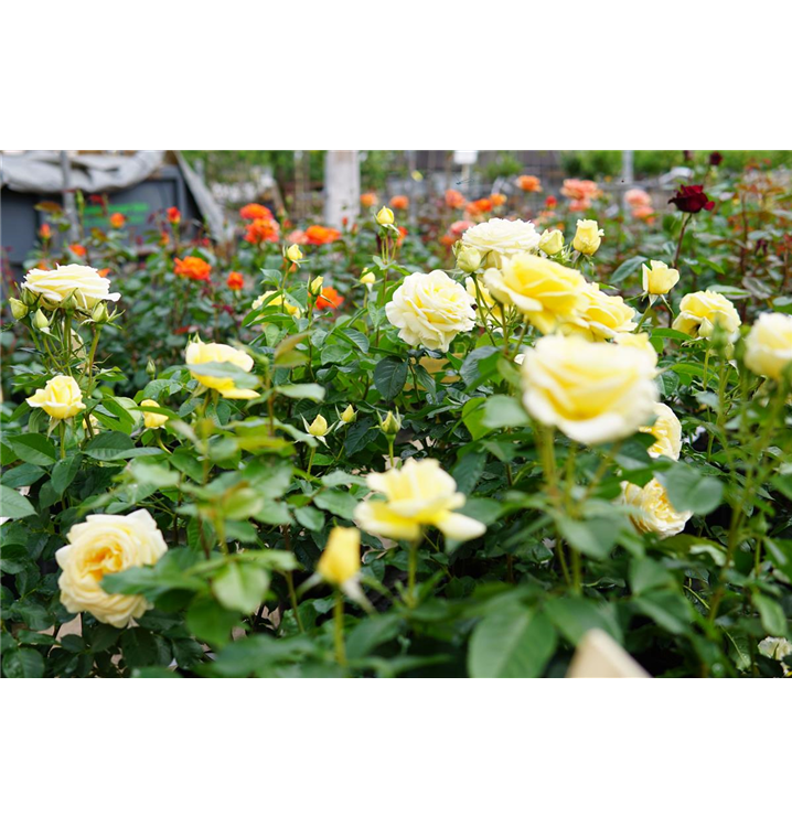 Edelrose 'Raffaello'® ist ein buschig und aufrecht wachsender Kleinstrauch, der eine Höhe von 0,8 - 1 m erreichen kann.