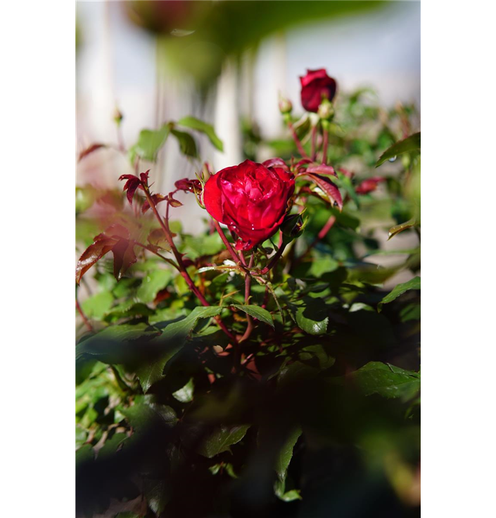 Die Triebe von Rosa 'Rouge Meilove'® sind bestachelt.