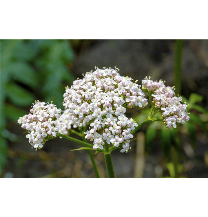 Der Gewöhnliche Baldrian (Valeriana officinalis) ist eine aufrechte Staude, die von Mai bis Juli hellrosafarbene, in Dolden angeordnete Blüten bildet. An einem sonnigen bis halbschattigen Standort mit durchlässigem, lockerem Boden erreicht er gewöhnlich eine Höhe von ca. 1,7 m und wird ca. 60 cm breit. Der Gewöhnliche Baldrian ist gut frostverträglich.
