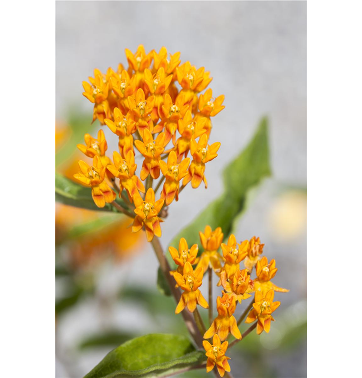 Asclepias tuberosa bildet sternförmige, in Dolden angeordnete, orangefarbene Blüten ab Juni. Diese verströmen einen angenehmen Duft.
