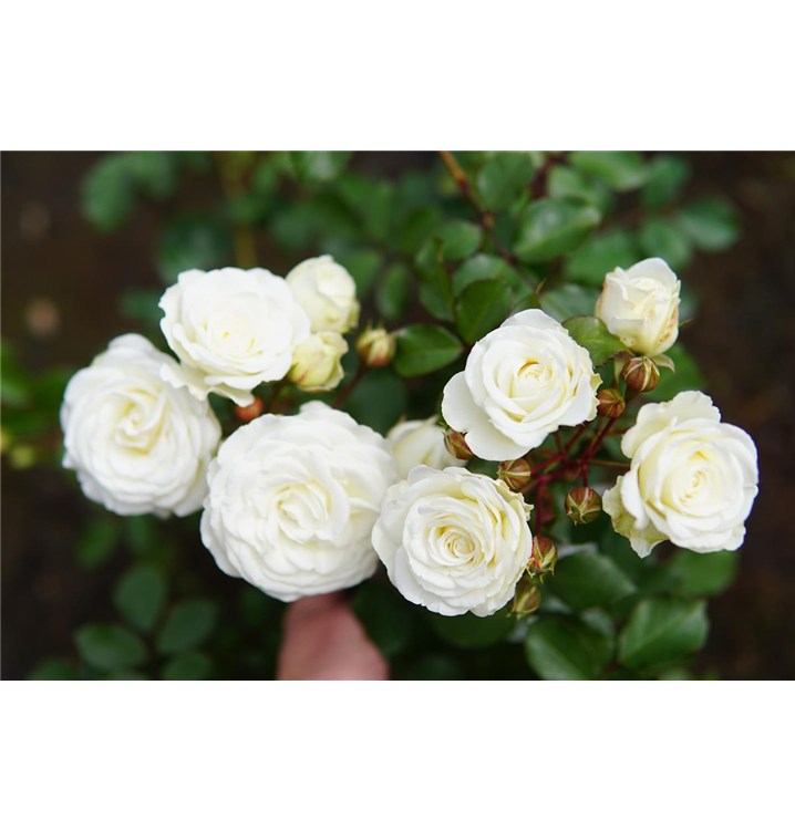 Die Zwergrose 'Schneeküsschen'® weist eine gute Frosthärte auf.