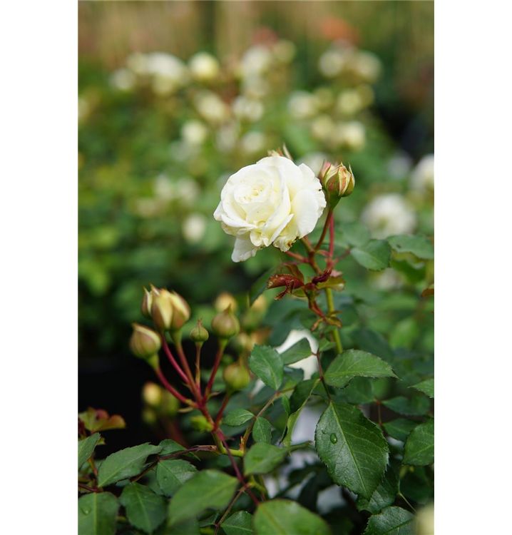 Die Triebe von Rosa 'Schneeküsschen'® sind bestachelt.