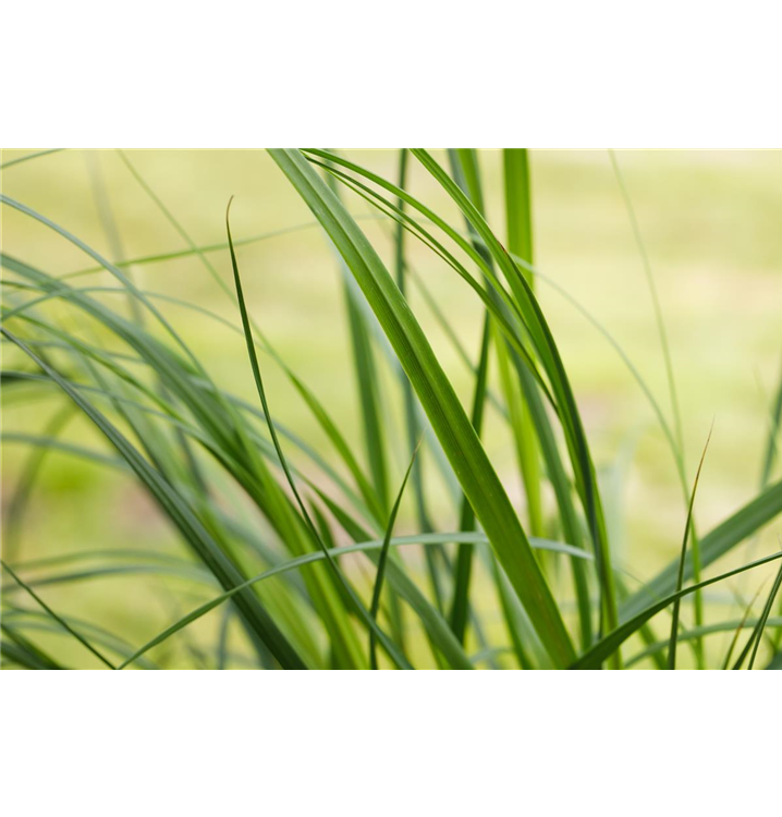 Die wintergrünen Blätter des Kleinen Garten-Pampasgrases 'Pumila' sind dunkelgrün, lineal.