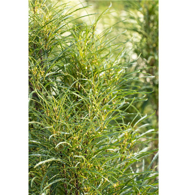 Der Farnblättrige Faulbaum 'Fine Line'® (Frangula alnus) ist ein aufrechter, dichter, schlanker Strauch mit dekorativen, schwarz-roten, runden Früchten. Diesen voraus bringt er von Mai bis Juni cremeweiße Blüten hervor. Zudem trägt der Farnblättrige Faulbaum 'Fine Line'®, glänzende, lanzettliche, mittelgrüne Blätter. An einem sonnigen bis schattigen Standort mit saurem, feuchtem bis nassem Boden erreicht er gewöhnlich eine Höhe von ca. 3,5 m und wird ca. 1 m breit.