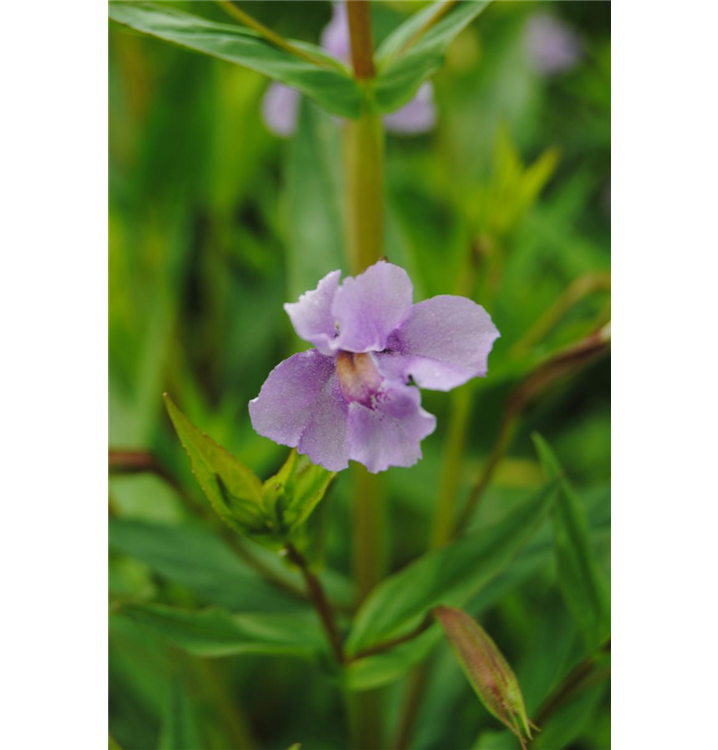 Die Offene Gauklerblume (Mimulus ringens) ist mit ihren mittelgrünen Blättern eine ausgesprochen dekorative Wasserpflanze, die für solche Einsatzbereiche wie Kübel, Bienenweide, Teichrand, Bachlauf und Naturgarten besonders gut geeignet ist. Die Blüten erscheinen, je nach Sorte, in vielen Farben von Juni bis Juli. Sie bevorzugt durchlässigen, humosen Boden in sonniger bis halbschattiger Lage. Die Offene Gauklerblume ist gut frostverträglich. Die breite, kriechende Staude erreicht gewöhnlich eine Höhe von ca. 80 cm.