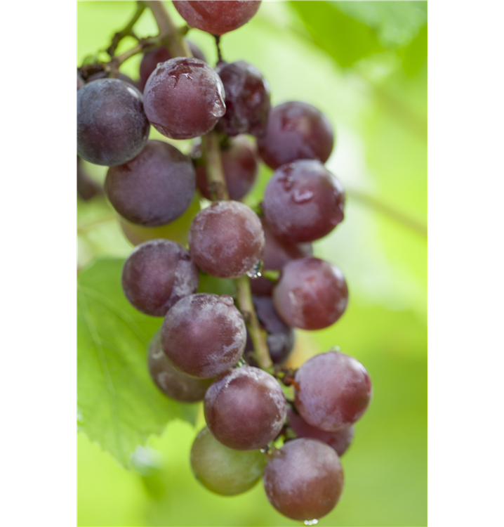 Die Tafeltraube 'Vanessa'® (Vitis vinifera) bildet rosarote, kernlose Früchte. Sie sind oval und haben einen süß-säuerlichen, süßen Geschmack. Für eine ertragreiche Ernte ab Anfang September schaffen durchlässiger, nährstoffreicher, sandiger Boden und ein sonniger bis halbschattiger Standort optimale Bedingungen. Auch ihre gelb-grünen, leicht duftenden Blüten sind eine schöne Erscheinung. Die Tafeltraube 'Vanessa'® wird mit ihrem kletternden Wuchs etwa 10 m hoch und 10 m breit.