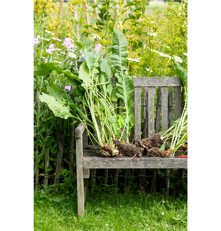 Armoracia rusticana kann eine Höhe von 0,6 - 1 m und eine Breite von 40 - 60 cm erreichen.