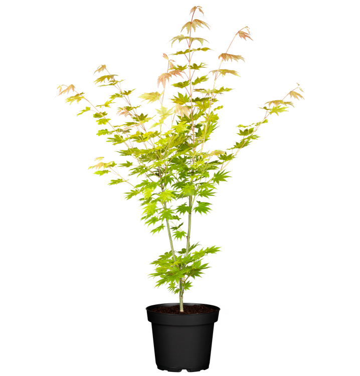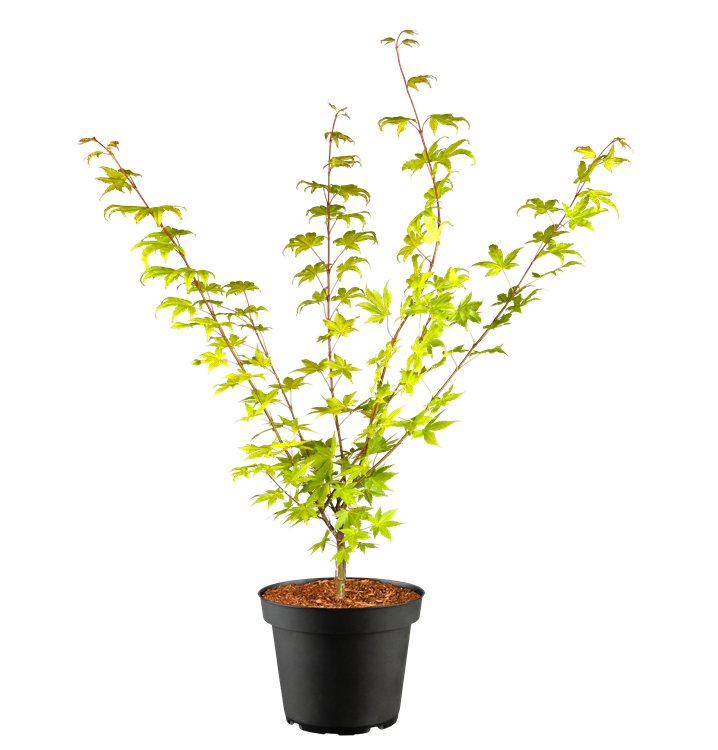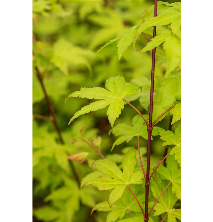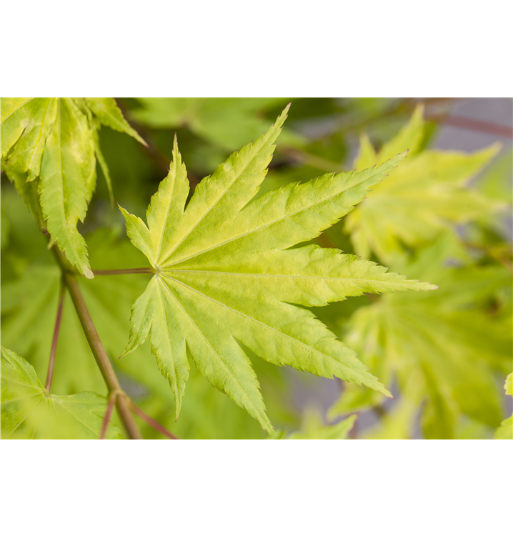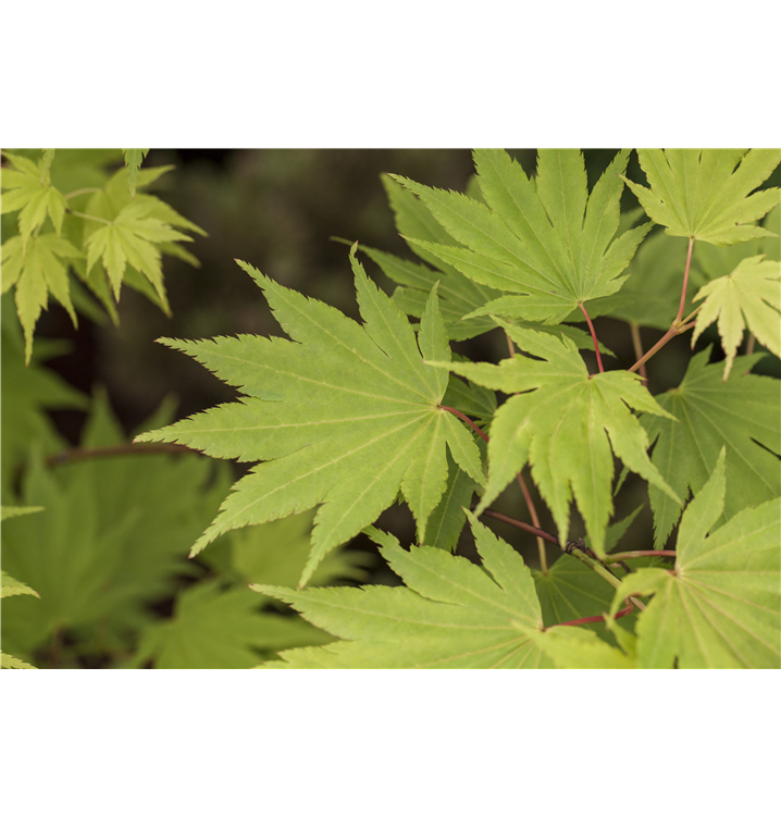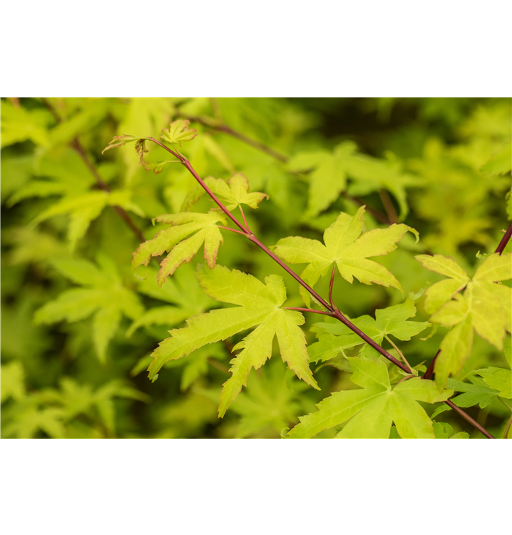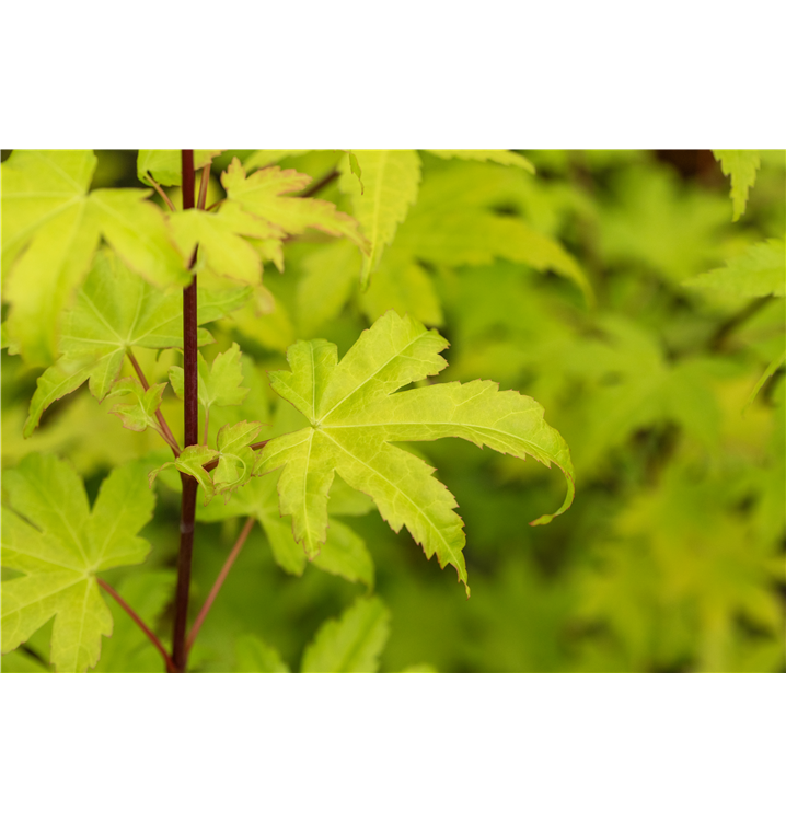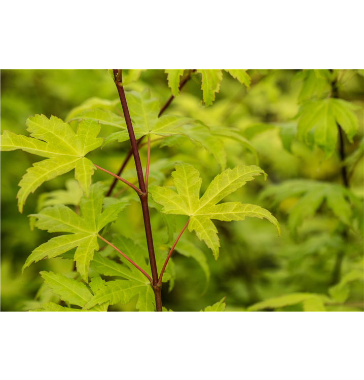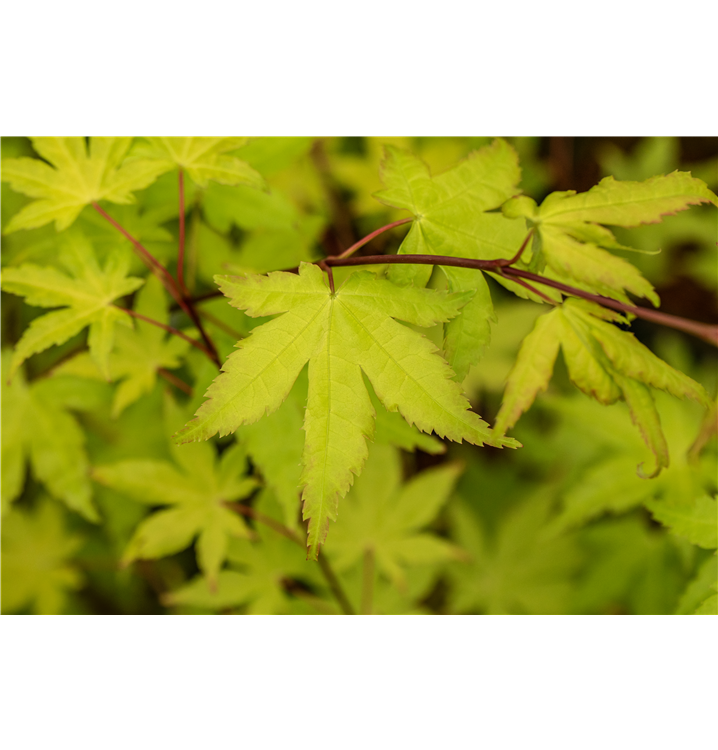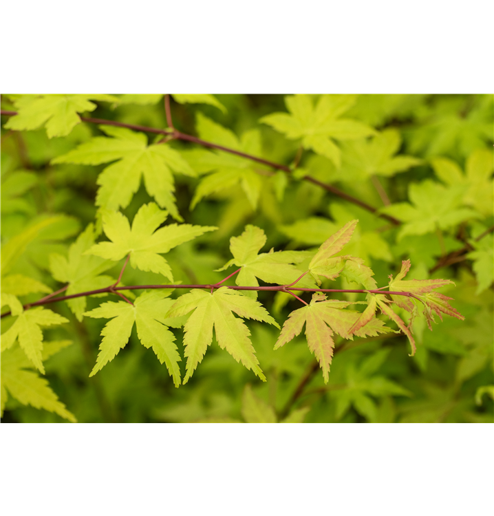 Zudem trägt der Fächerahorn 'Jordan'(s), gelb-grüne Blätter. Auch der gelbe Austrieb ist sehr schön. An einem sonnigen bis halbschattigen Standort mit durchlässigem, humosem Boden erreicht er gewöhnlich eine Höhe von ca. 3 m und wird ca. 3 m breit.