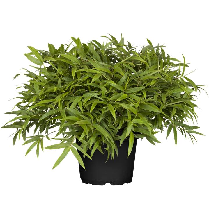 Buschbambus ist ein buschig wachsender Kleinstrauch, der eine Höhe von 40 - 80 cm und eine Breite von 0,5 - 1 m erreichen kann. In der Regel wächst er 10 - 20 cm pro Jahr.