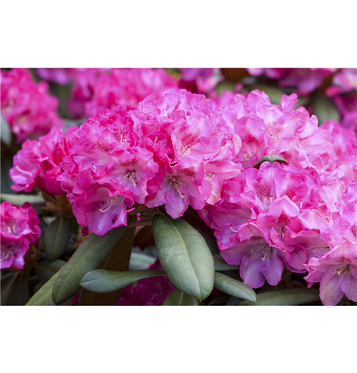 Der Rhododendron 'Anuschka' (Rhododendron yakushimanum) bringt von Ende Mai bis Mitte Juni ein wahres Meer aus rosa-weißen Blüten hervor. Sein immergrünes Laub ist dunkelgrün. Dieses flach, rundlich wachsende Gehölz erreicht gewöhnlich eine Höhe von 1 - 1,2 m und eine Breite von 1,5 bis 1,8 m. Ein halbschattiger (bis schattiger) Standort und ein humoser, kalkfreier Boden schaffen optimale Bedingungen für ein gesundes Wachstum. Der Rhododendron 'Anuschka' ist gut frostverträglich.