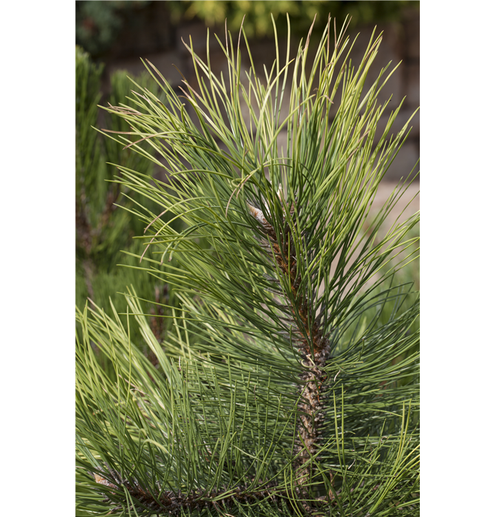 Die Schwarzkiefer (Pinus nigra) ist ein Gehölz, welches kegelförmig wächst und gewöhnlich eine Höhe von ca. 25 m und eine Breite von ca. 10 m erreicht. Ihre nadelförmigen Blätter haben eine dunkelgrüne Färbung. Dekorative braune Zapfen zieren Pinus nigra ab September. Dieses Gehölz ist gut frostverträglich.Sie bevorzugt durchlässigen, kalkhaltigen, sandigen Boden in sonniger Lage.