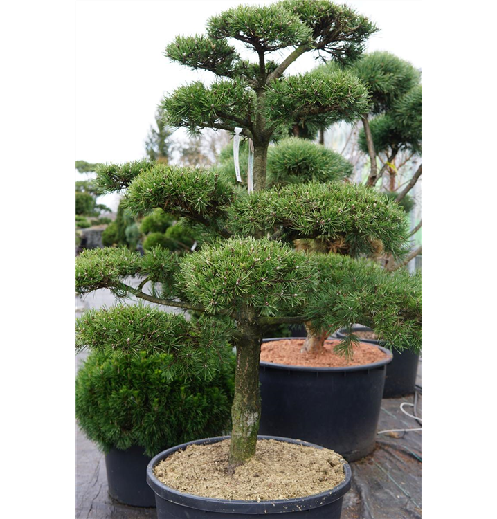 Hakenkiefer ist ein aufrecht und kugelförmig wachsender Großbaum. Sie erreicht gewöhnlich eine Höhe von 10 - 25 m und wird ca. 4 - 6 m breit.