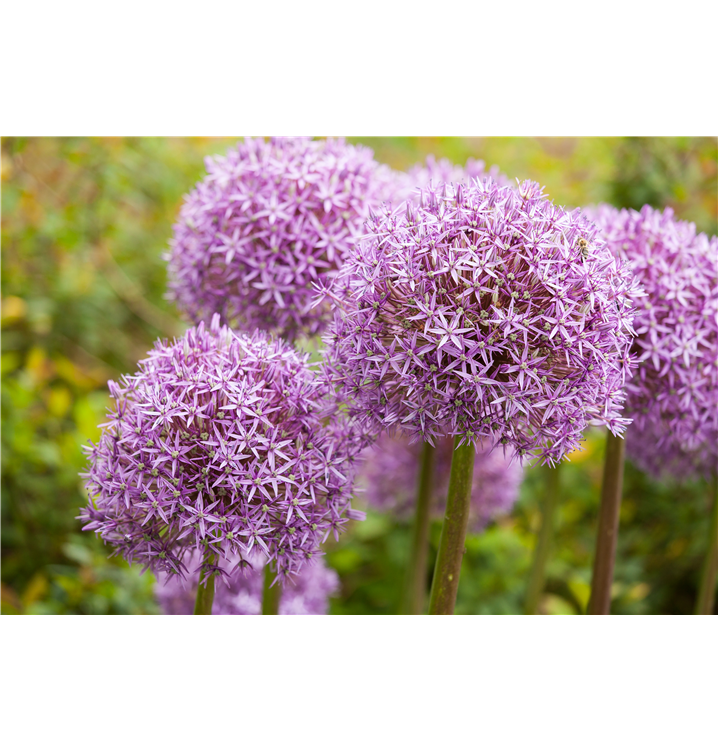 Die purpurvioletten, ballförmigen Blüten erscheinen von Mai bis Juni.
