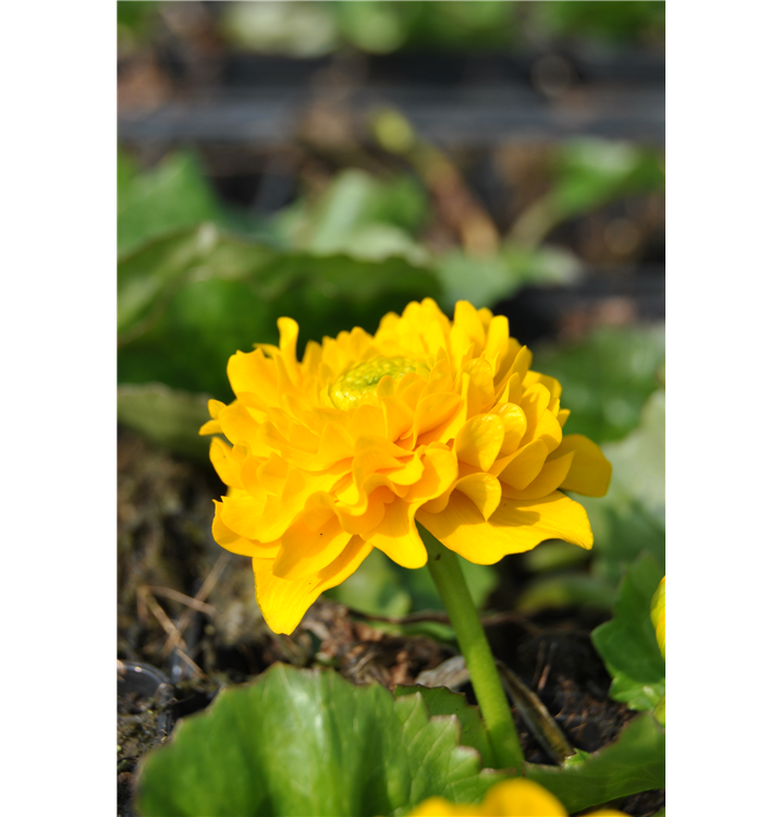 Die Gefülltblühende Garten-Dotterblume 'Multiplex' (Caltha palustris) ist mit ihren dunkelgrünen Blättern eine ausgesprochen dekorative Wasserpflanze, die für solche Einsatzbereiche wie Bienenweide, Teichrand und Bachlauf besonders gut geeignet ist. Goldgelbe, angenehm duftende, gefüllte Blüten erscheinen von März bis Mai. Sie bevorzugt lockeren, sandigen Boden in sonniger bis schattiger Lage. Die Gefülltblühende Garten-Dotterblume 'Multiplex' ist gut frostverträglich. Die horstbildende Pflanze erreicht gewöhnlich eine Höhe von ca. 25 cm.