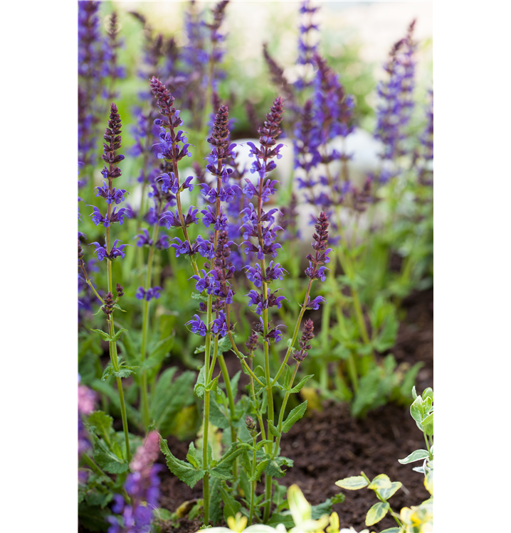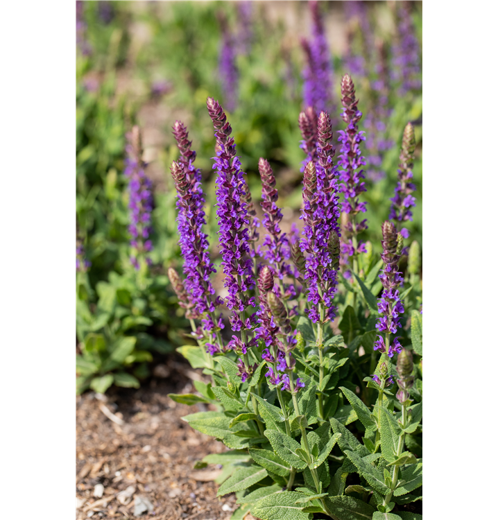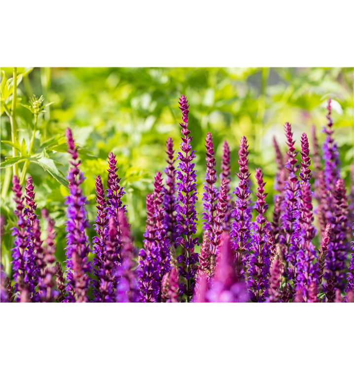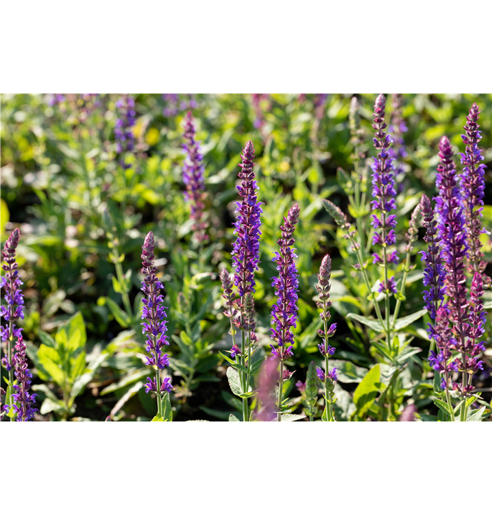 Salvia nemorosa 'Ostfriesland' bildet lippenförmige, in Rispen angeordnete, violette Blüten ab Juni. Diese werden etwa 5 - 10 cm groß. Bei richtiger Pflege Nachblüte im September.