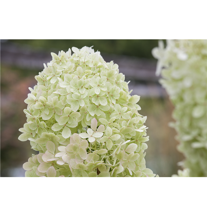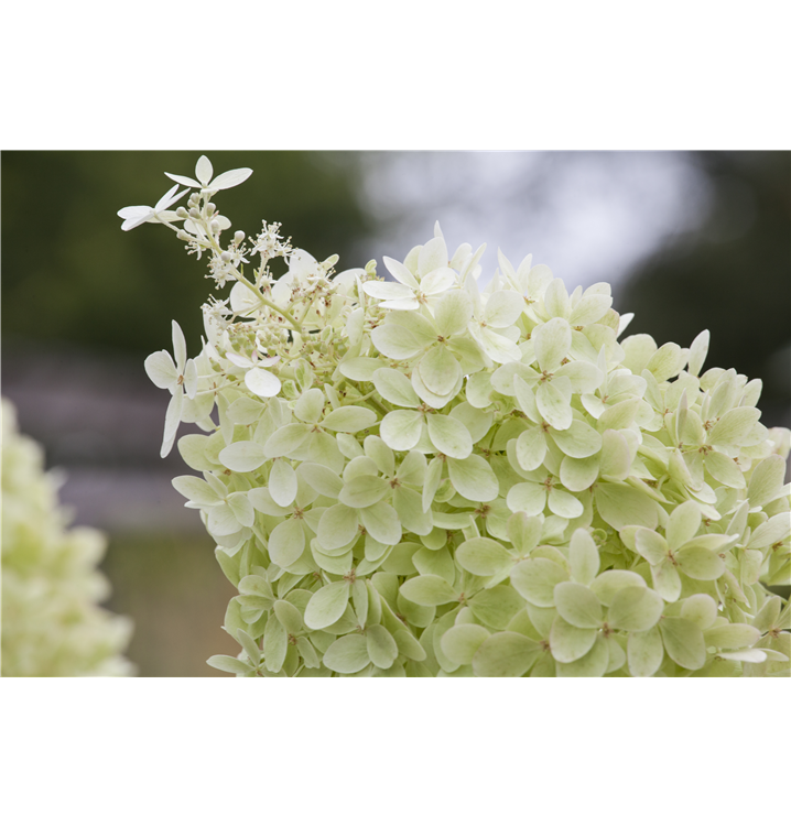 Die weißen Blüten der Rispenhortensie 'Limelight'(s) erscheinen in Rispen von August bis Oktober. Diese sind angenehm duftend.