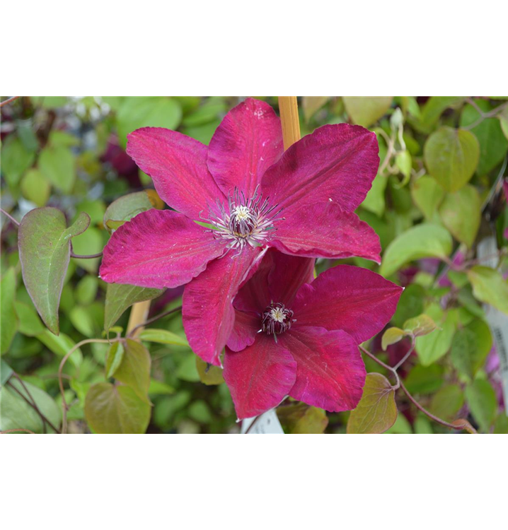 Waldrebe 'Westerplatte' ist ein rankend wachsende Kletterpflanze, welche eine Höhe von 2 - 3 m und eine Breite von 0,5 - 1 m erreichen kann.